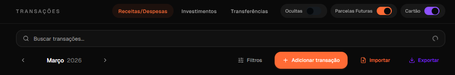 Adicionamos dois filtros novos a tela de transação: o filtro por origem (manual, sincronizada ou importada) e o filtro de cartão de crédito.
